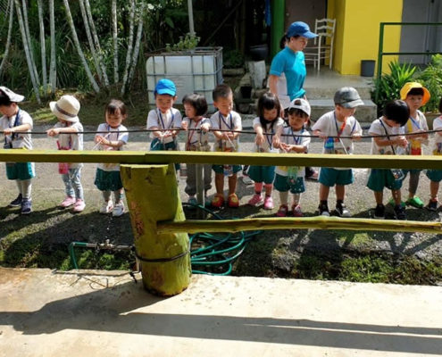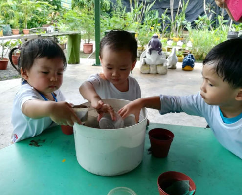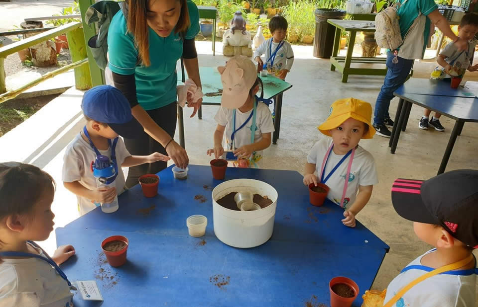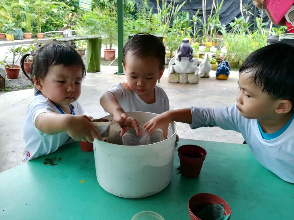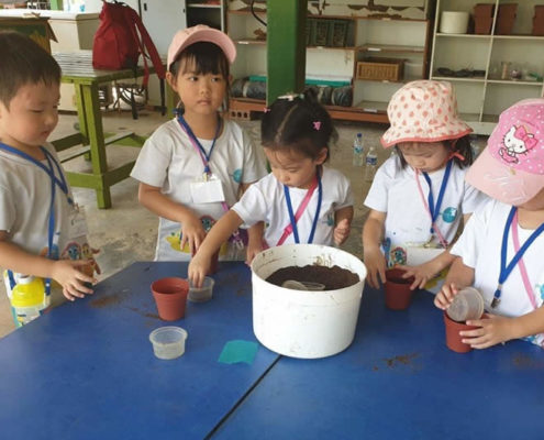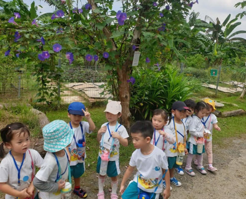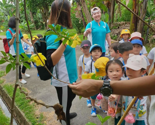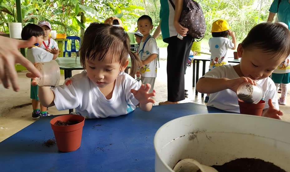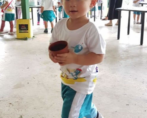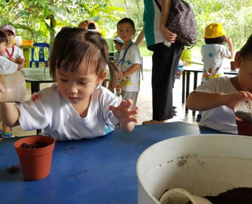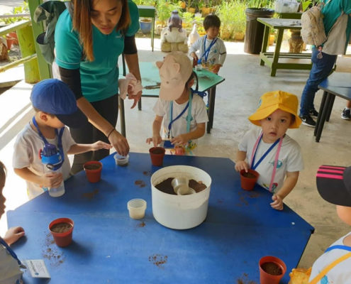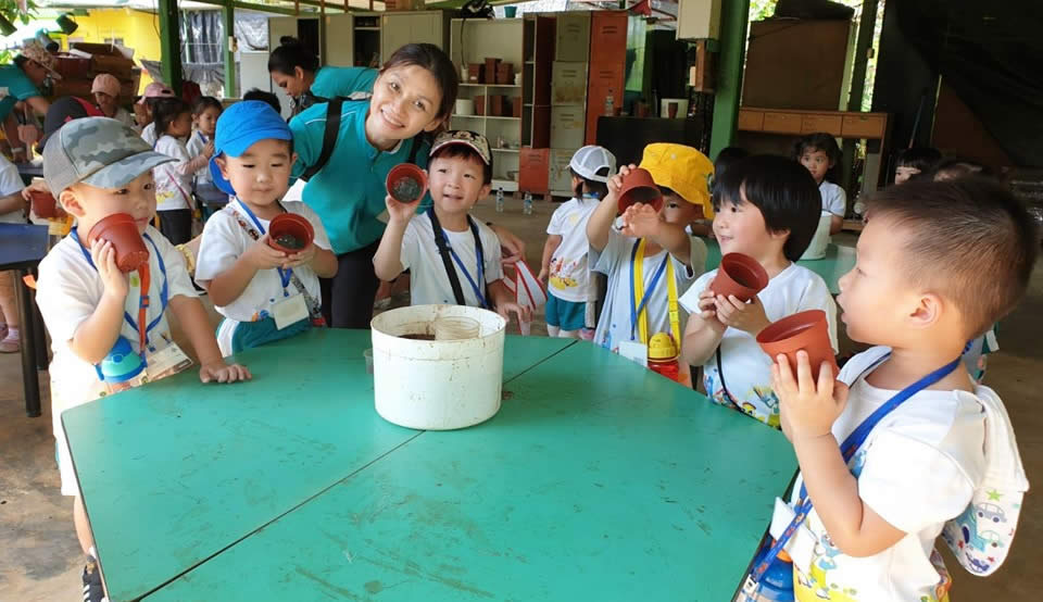 The sun was up and the weather was perfect for a farm experience. At the Bollywood Veggies, our ChildFirst @ King Albert Park Pre-Nursery, Nursery 1 and Nursery 2 children and their parents learnt interesting facts about plants and their uses. They also had wholesome fun as they potted “kangkong” (water spinach) together. Besides developing an appreciation for nature and exercising their naturalist intelligence, the activities also fostered positive bonding between our children, parents and teachers.