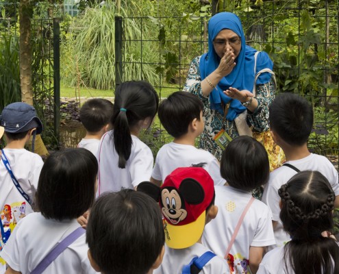 Our ChildFirst @ Mountbatten K2 children took a guided tour of the Jacob Ballas Children’s Garden to learn more about plants. They observed that yams and sweet potatoes grow underground, pineapples grow close to the ground and bananas grow upside down! They also used their sense of smell to identify different types of leaves such as rosemary, lemongrass, basil and curry leaves. It was a fun and fruitful for all.