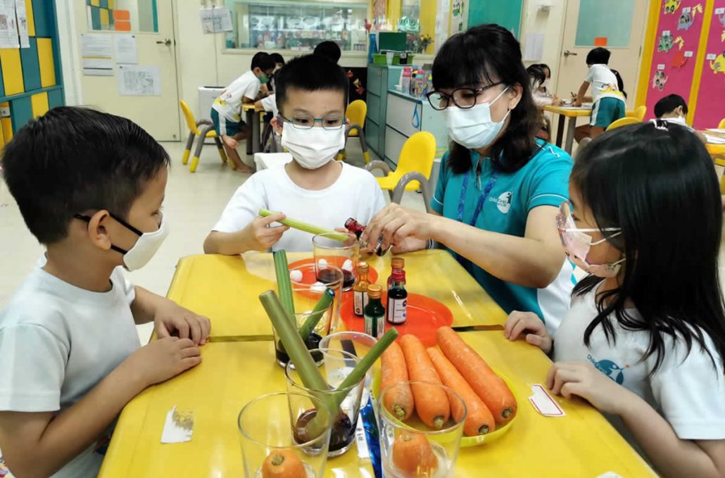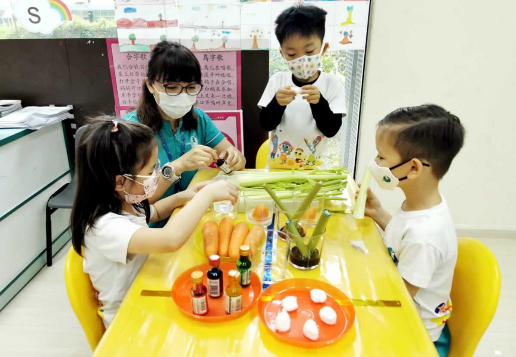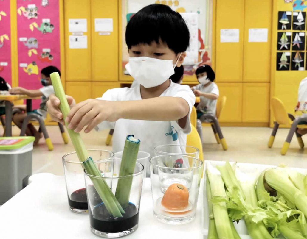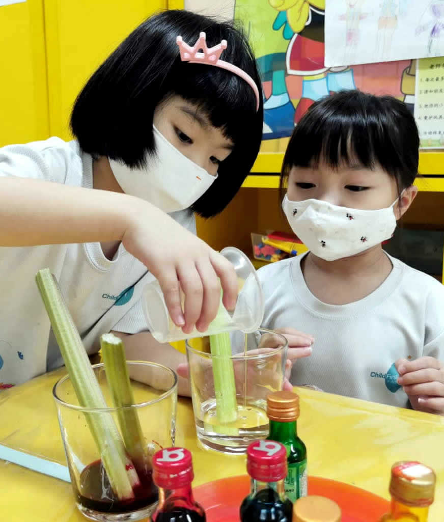 Do you know how plants “drink” water? Our ChildFirst @ Mountbatten children learnt the growth process of plants and explored how plants absorb water through an experiment using spinach stems. Learning through a hands-on process helps children to understand science concepts better and also cultivates their observational skills.