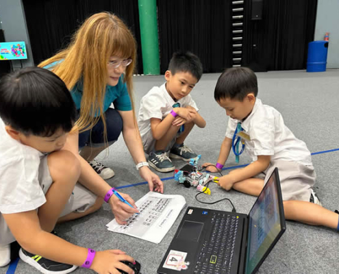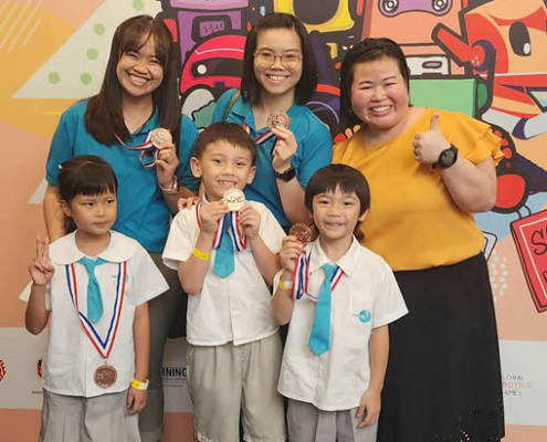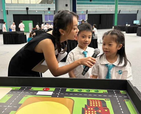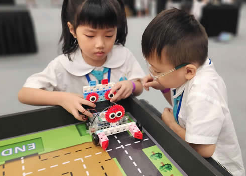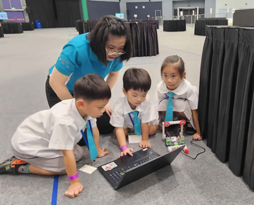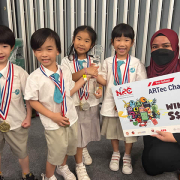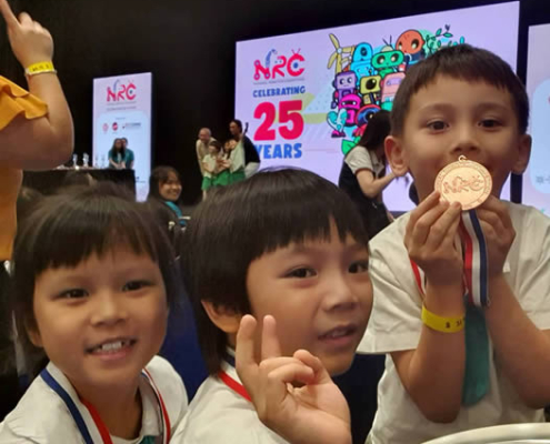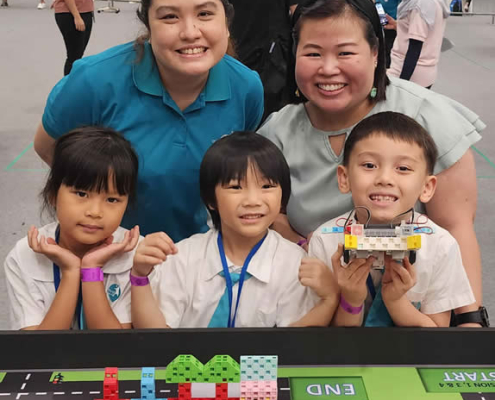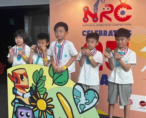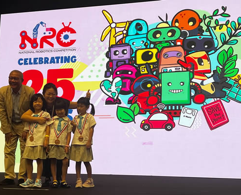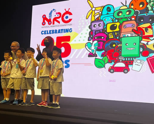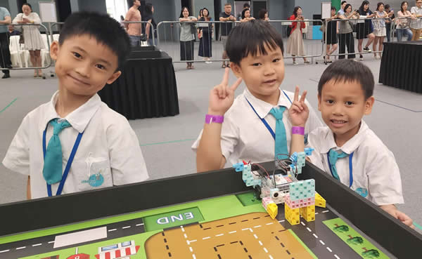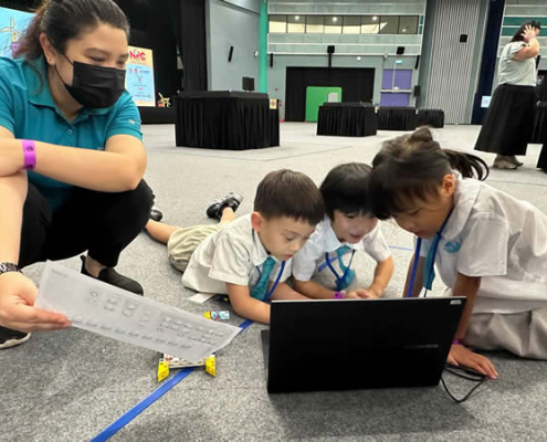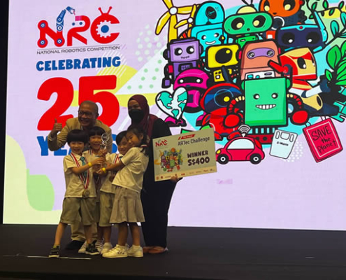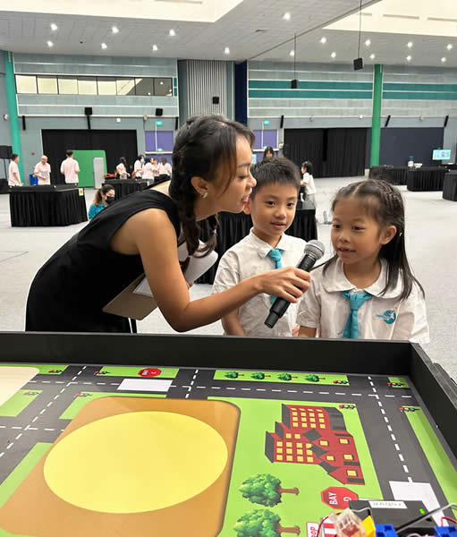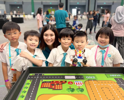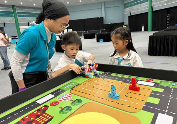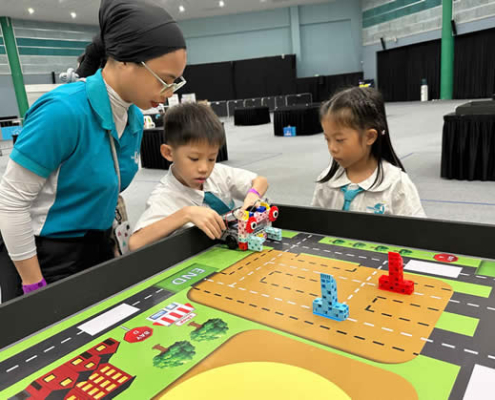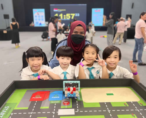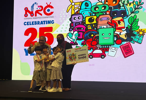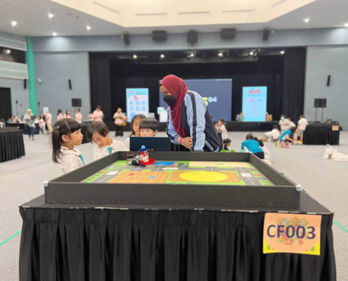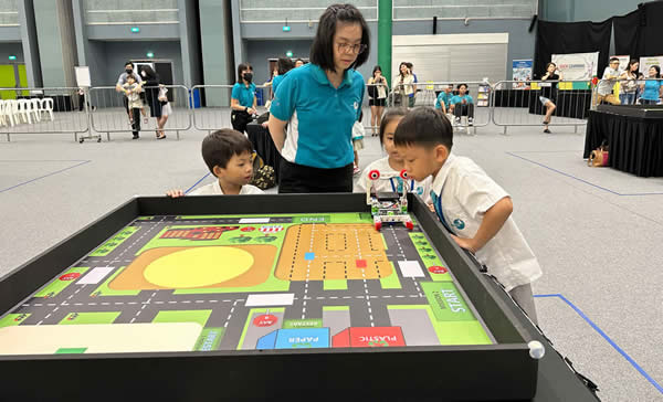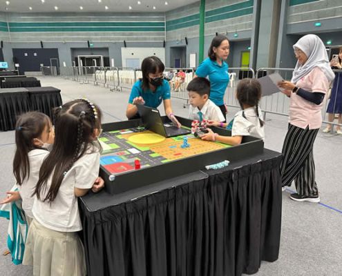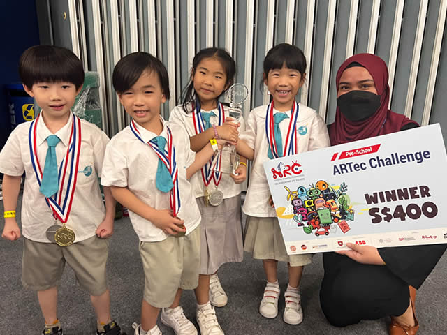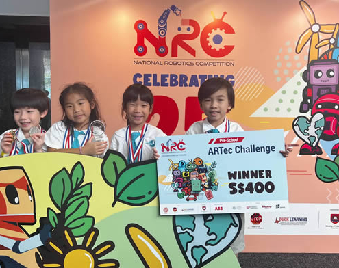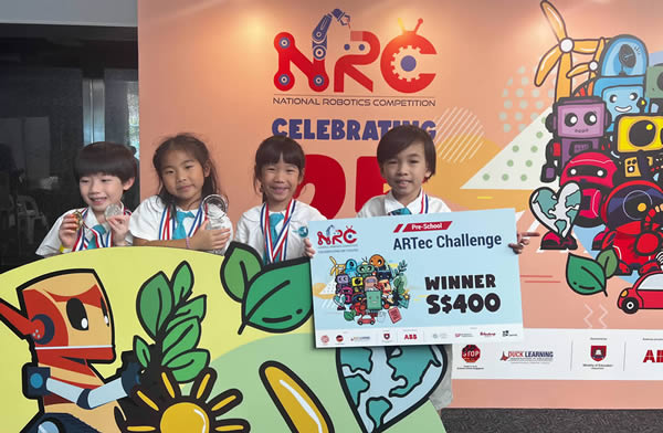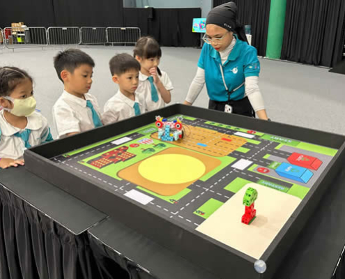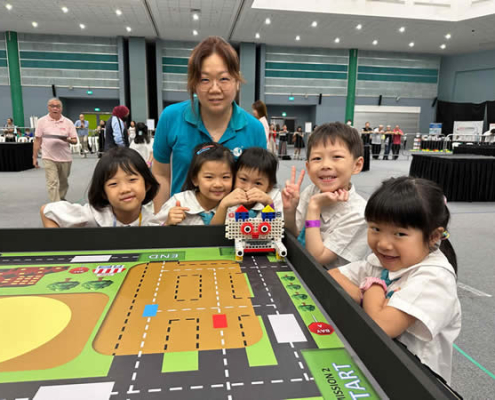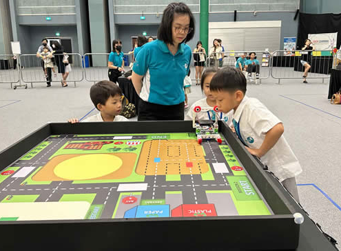 The National Robotics Competition (NRC) held in the month of August 2023 saw 35 pre-school teams competing in the ARTec Challenge. The competition required the children to showcase their presentation skills during the virtual session where they shared the challenges faced and their reflections to a panel of judges. For the on-site competition, the children had to code and complete four tasks, one of which was a surprise mission announced on the actual day.