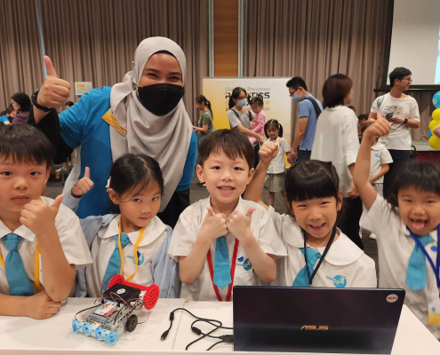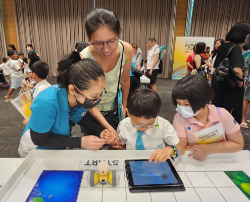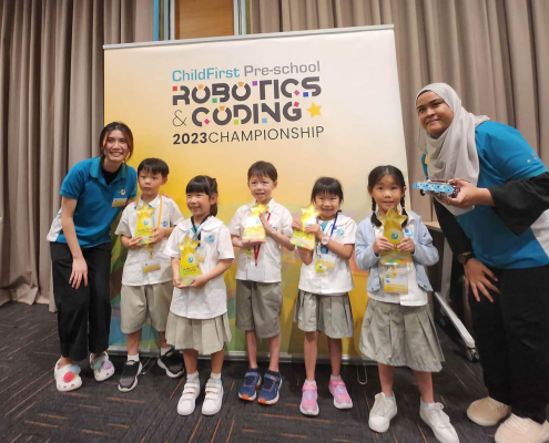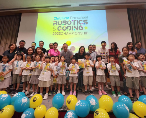 The finals of ChildFirst’s inaugural Robotics & Coding Championship 2023 was held this morning, a week after the semi-finals were held in our individual schools. Over 100 of our Kindergarten 2 children and their families came together for today’s event. The children and parents participated in various coding activities at our games stations such as coding a robot to hit the bowling pins and coding a robot to hunt for treasure, whilst the top 9 teams from the semi-finals competed live in a series of coding challenges. In the end, Team Brave emerged the winner. This Championship was never about just winning. Ultimately, our goal was to provide our K2 children the opportunity to showcase their coding skills, creativity, problem solving skills, sportsmanship and confidence on a bigger stage. Indeed, we are all proud of what they have achieved through this event. Well done to our K2 teachers and children! You are all winners in our eyes!