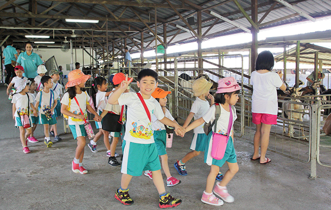 Whenever children are asked “Which animal produces milk?”, the answer is inevitably “cow”. The excursion to Hay Dairies Farm gave our ChildFirst @ Mountbatten Kindergarten 2 children an opportunity to meet another animal producer of milk, goats! It was an eye opener for many of the children to learn about the different types of dairy goats and to see the process of goat’s milk production. The highlight of the trip was the sampling of fresh goat’s milk!